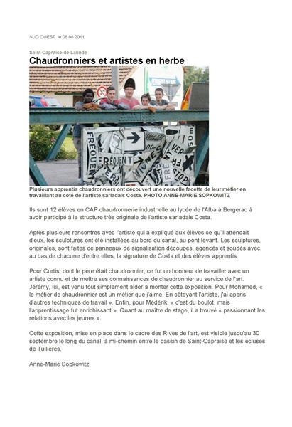 Sud Ouest : « coup de coeur » du 16 août 2011