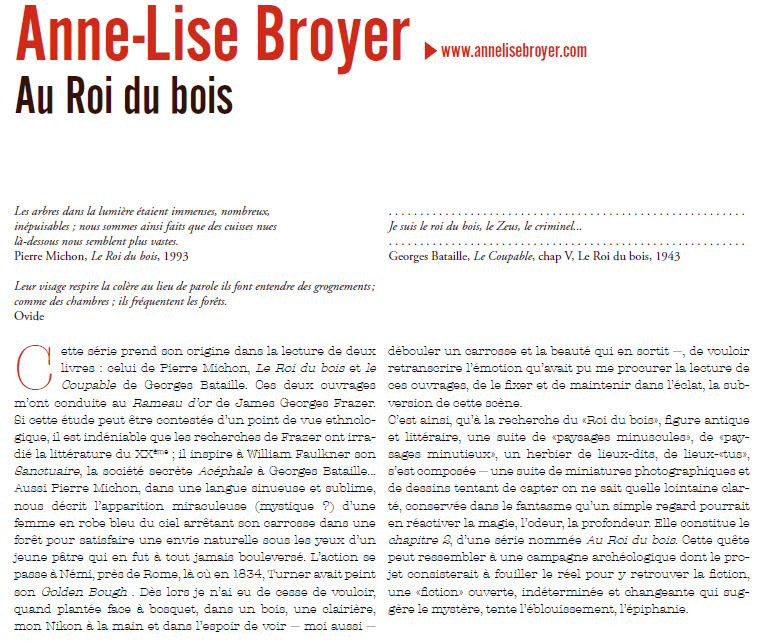 expo « Au roi du bois » Anne-Lise BROYER texte extrait du Dossier de presse Agence Révélateur, 26e ITINÉRAIRES DES PHOTOGRAPHES VOYAGEURS BORDEAUX 2016