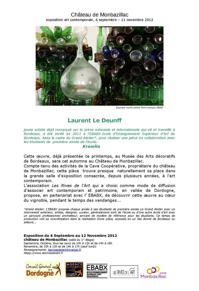 Laurent LE DEUNFF, artiste invité par Les Rives de l’Art