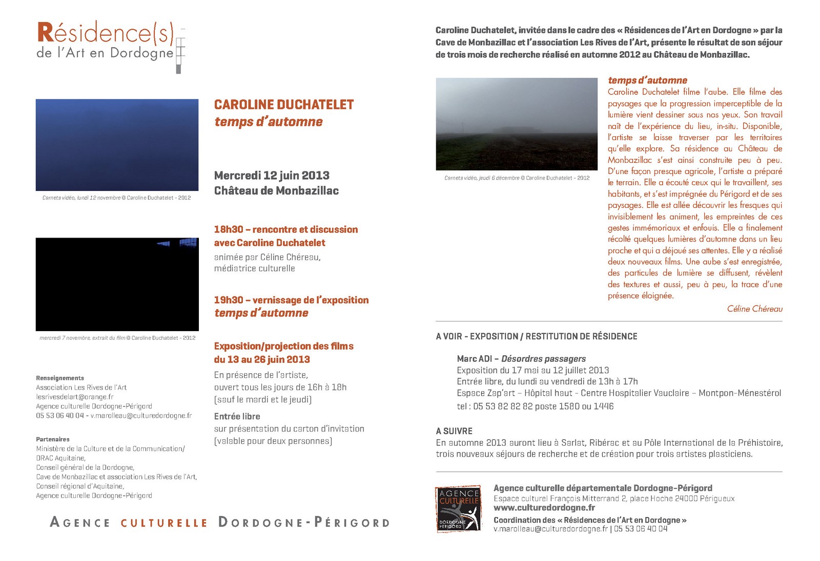 Résidence(s) de l’Art en Dordogne Caroline DUCHATELET