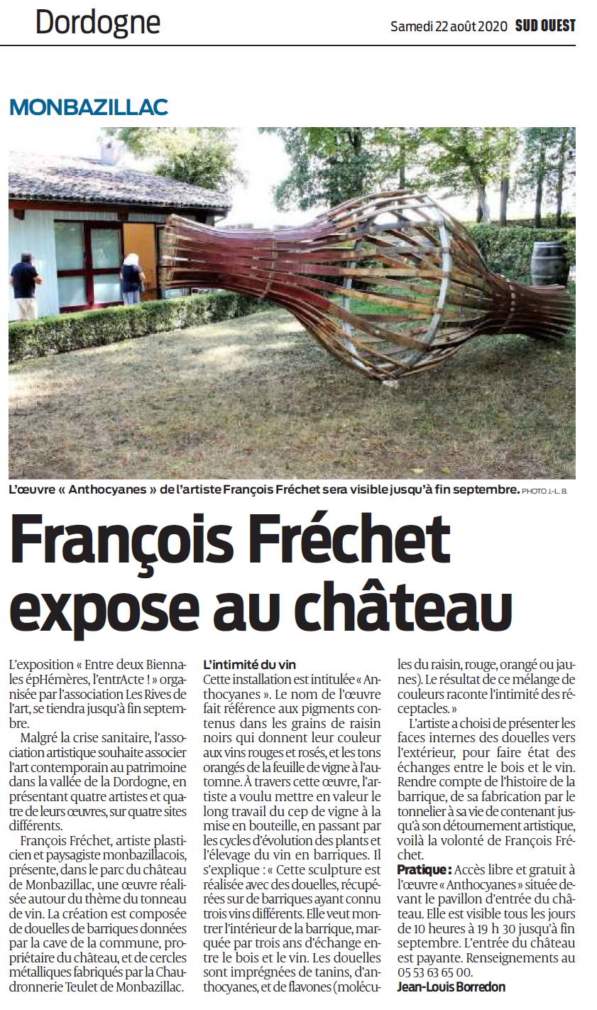 Article de Jean-Louis Borredon publié dans Sud Ouest du 22 août 2020