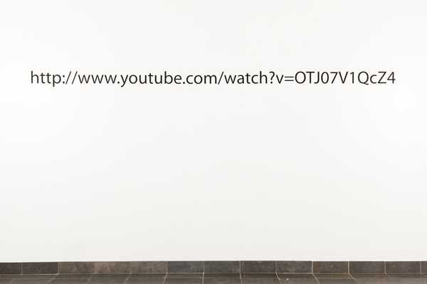 « Le lien hypertexte peint sur la cimaise renvoie à une vidéo du crash test d’un avion. Lors de l’impact, vaporeuses, trois couleurs s’échappent de différentes parties de l’appareil. Rouge, jaune, bleu est le titre d’une série de tableaux du peintre B. Newman, figure majeure, dont se nourrit le travail de Pernet. Ici, la peinture succède à une existence presque immatérielle. L’artiste aurait-il trouvé le moyen le plus efficace pour que la peinture incarne le sublime tel que le voulait Newman ? » Palais de Tokyo, 2013