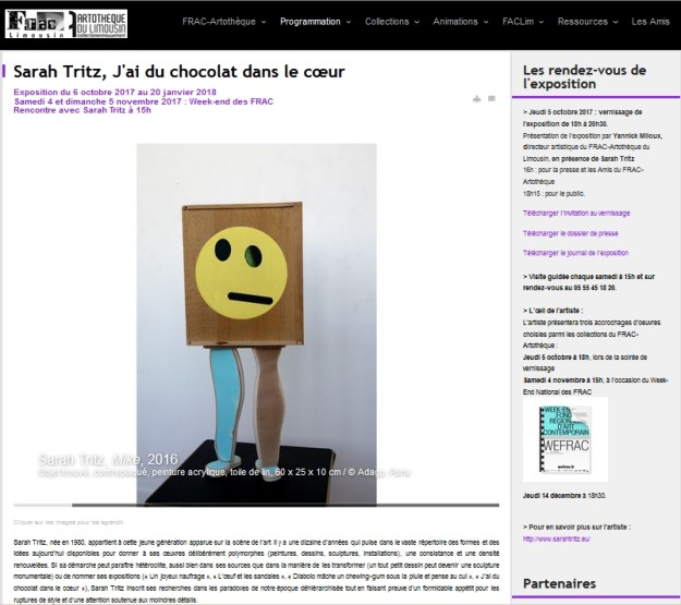 en lien avec l’exposition « J’ai du chocolat dans le coeur » de Sarah TRITZ