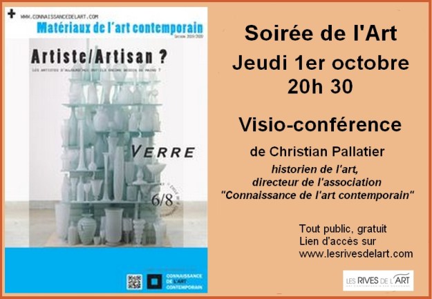 Le cycle de visioconférences « Matériaux de l’art contemporain : Artistes/artisans ? » continue le 1er jeudi de chaque mois de septembre à décembre 2020