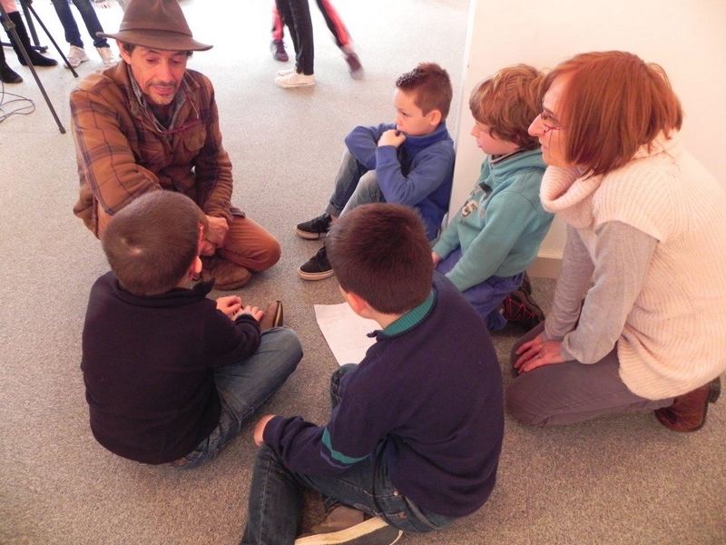 2015 Erik SAMAKH et les écoliers de Monbazillac ← Précédent Suivant → Création des histoires à mettre en sons (école primaire de Monbazillac)