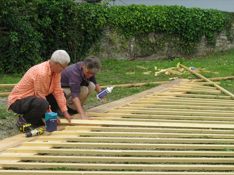 Mireille Fulpius assemble les barres peintes
