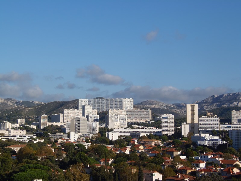 2019 la cité radieuse de Le Corbusier à Marseille ← Précédent Suivant → la vue, côté salon, sur le massif de l’Etoile