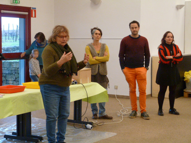 2019, en décembre, samedi de l’art en famille ← Précédent Suivant → Annie Wolff, présidente de l’association présente les 3 artistes