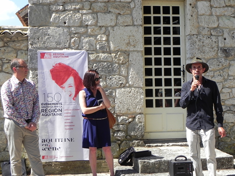 2015 présentation de Erik SAMAKH en résidence au château de Monbazillac ← Précédent Suivant → Gilles Bartoszek, directeur de la Cave coopérative de Monbazillac; Isabelle Pichelin directrice de l’Agence culturelle Dordogne-Périgord ; Erik Samakh