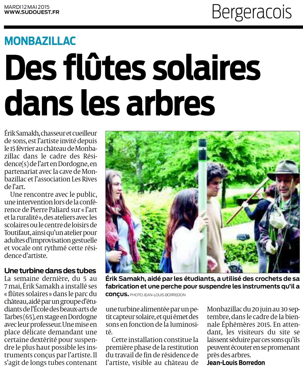 2015 journal Sud Ouest et Erik SAMAKH Journal Sud Ouest du 19 février Cliquez sur les articles pour agrandir. journal sud ouest du 12 mai Journal Sud Ouest du 23 juin Erik SAMAKH en résidence au château de Monbazillac haut de page